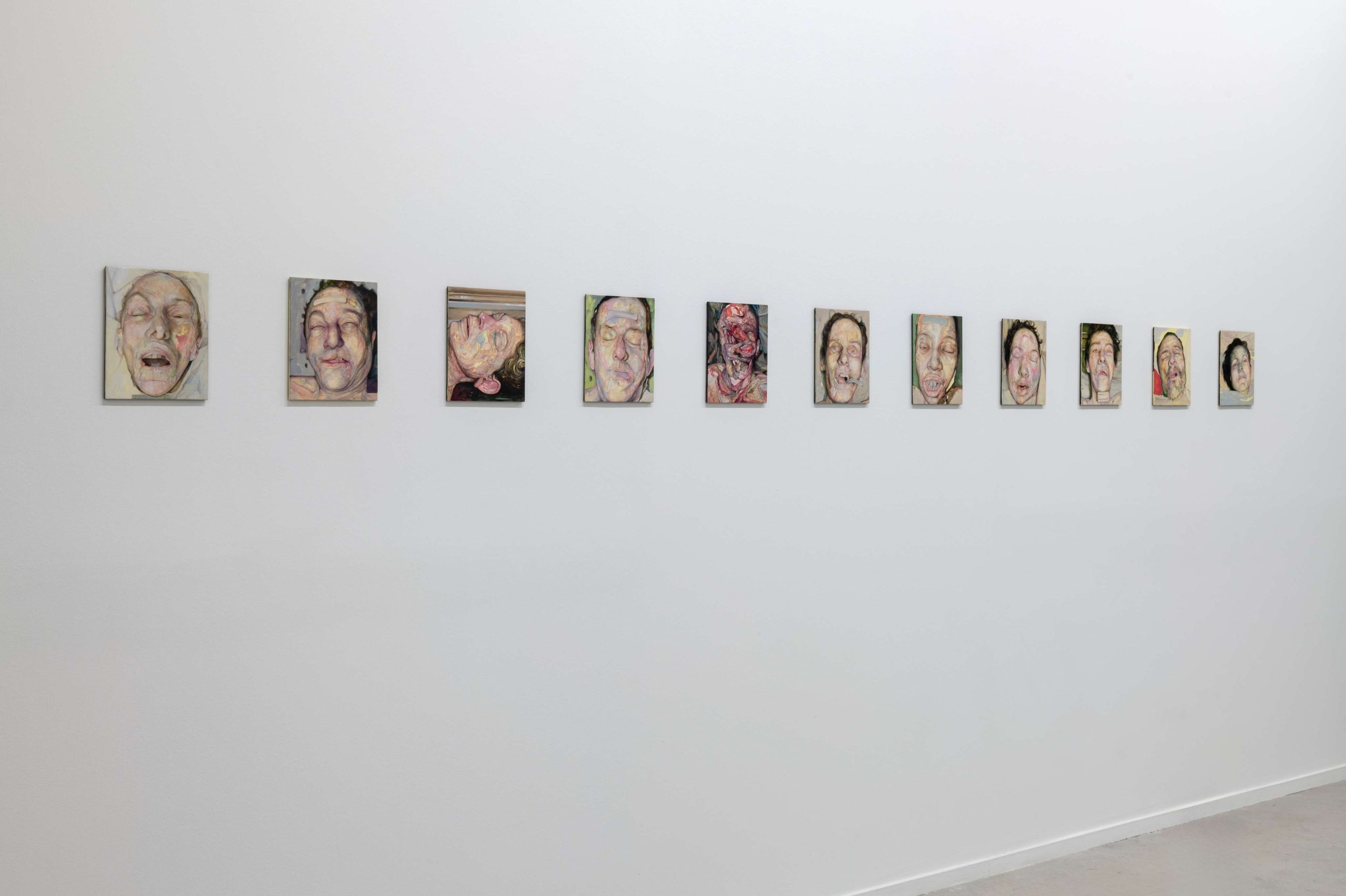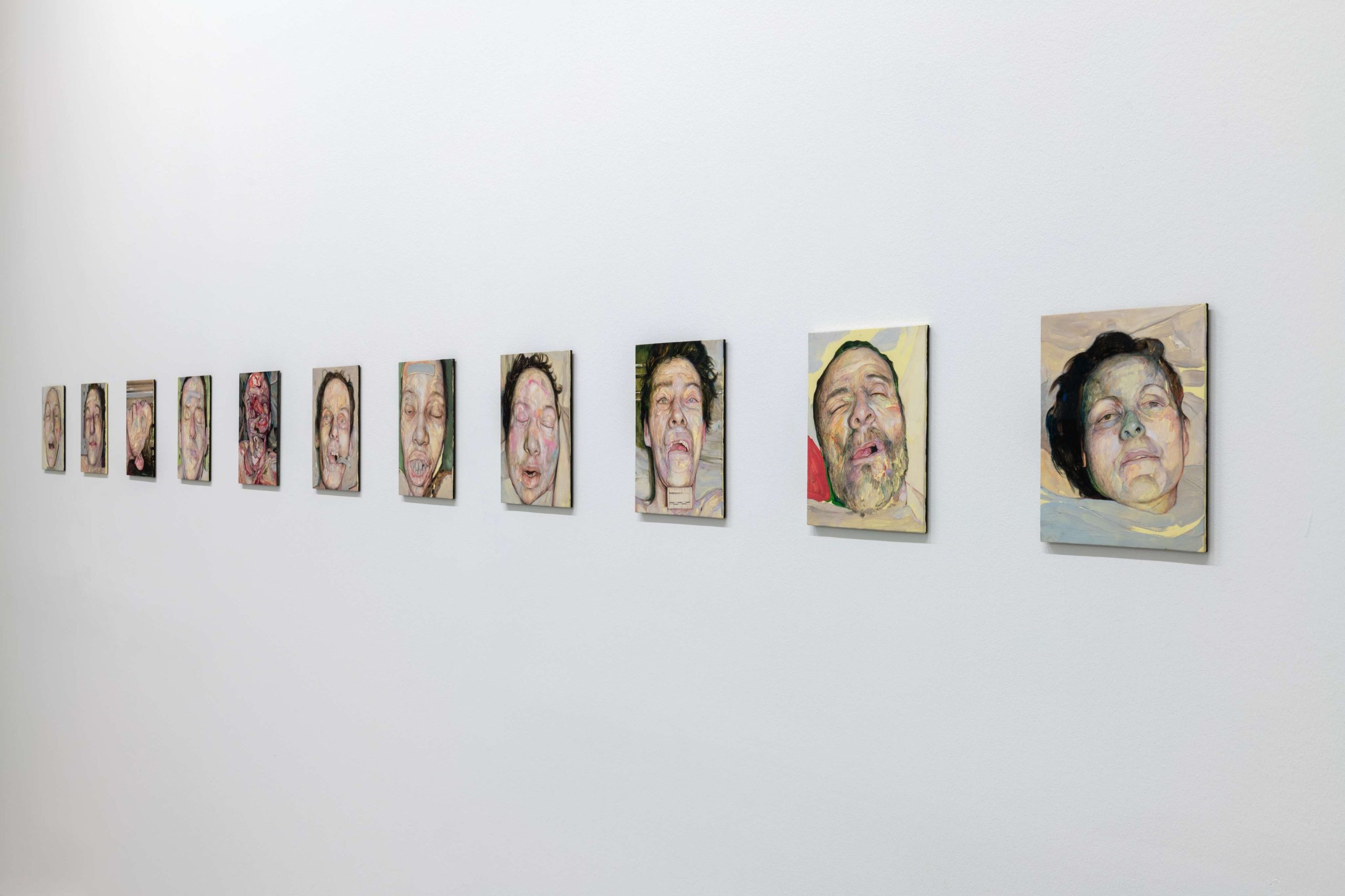 Les photographies de Andres Serrano et Jeffrey Silverthorne ont été prises dans des morgues aux États-Unis, c’est également dans ce lieu, dont l’activité quotidienne est rarement accessible, que Stan Brakhage a tourné son film. Rafael Rodríguez et Antoine d’Agata quant à eux proposent d’autres types de séries, l’un en peintures, l’autre en portraits photographiques : il s’agit de visages à identifier, en Ukraine et au Mexique. Une seule œuvre ne montre pas de corps, mais l’évoque par le tissu qui a nettoyé la scène du crime, et les témoignages à lire ou à entendre qui racontent des morts : «Los Otros» de Teresa Margolles.